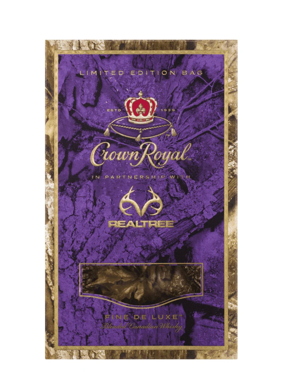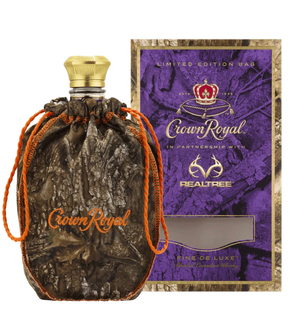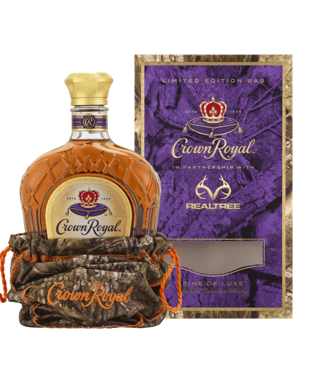 Crown Royal x Realtree Fine De Luxe Limited Edition is a special collaboration release that pairs the classic Crown Royal blend with a rugged Realtree camouflage bag, designed for outdoor enthusiasts and collectors.